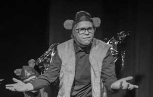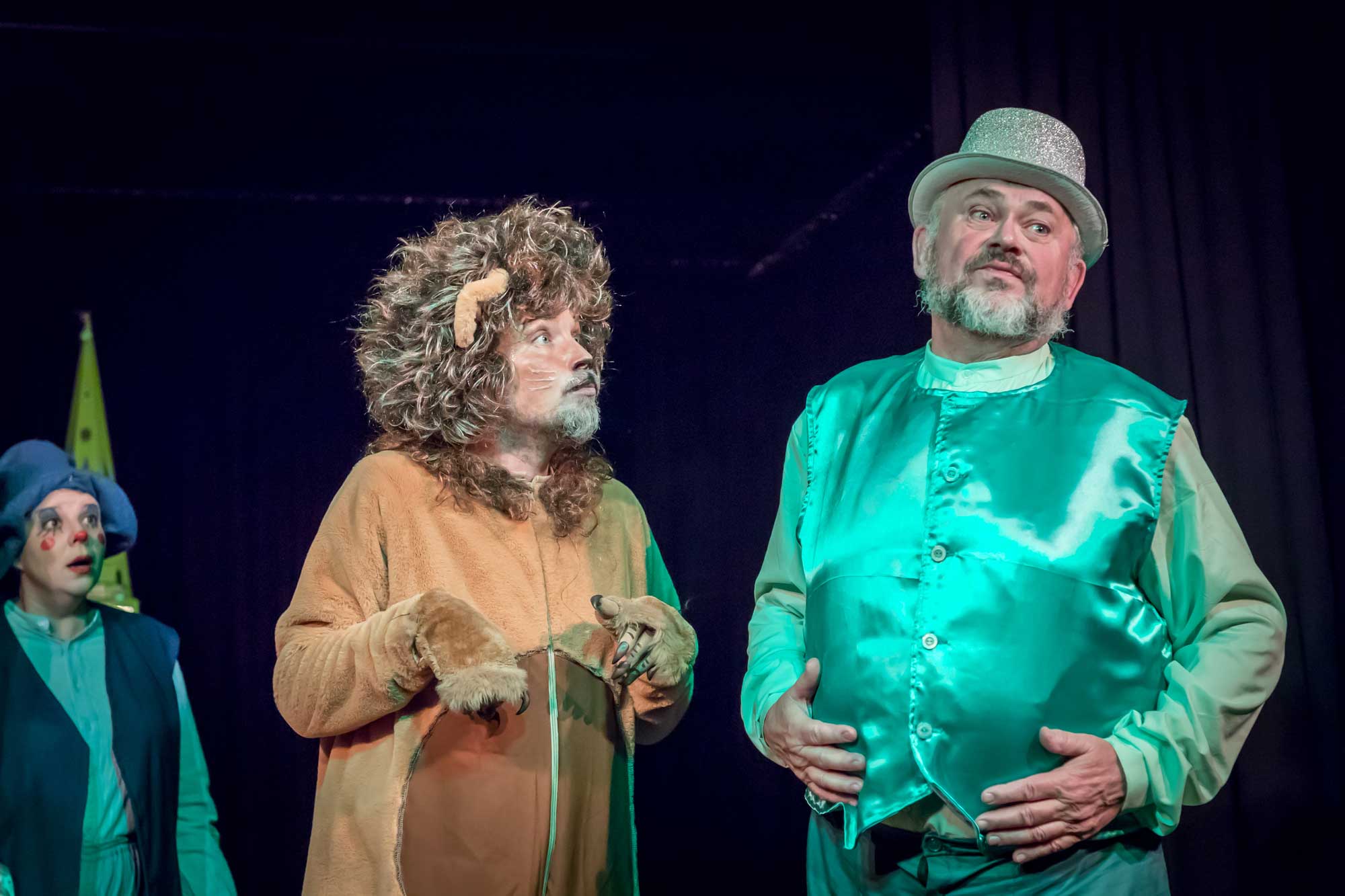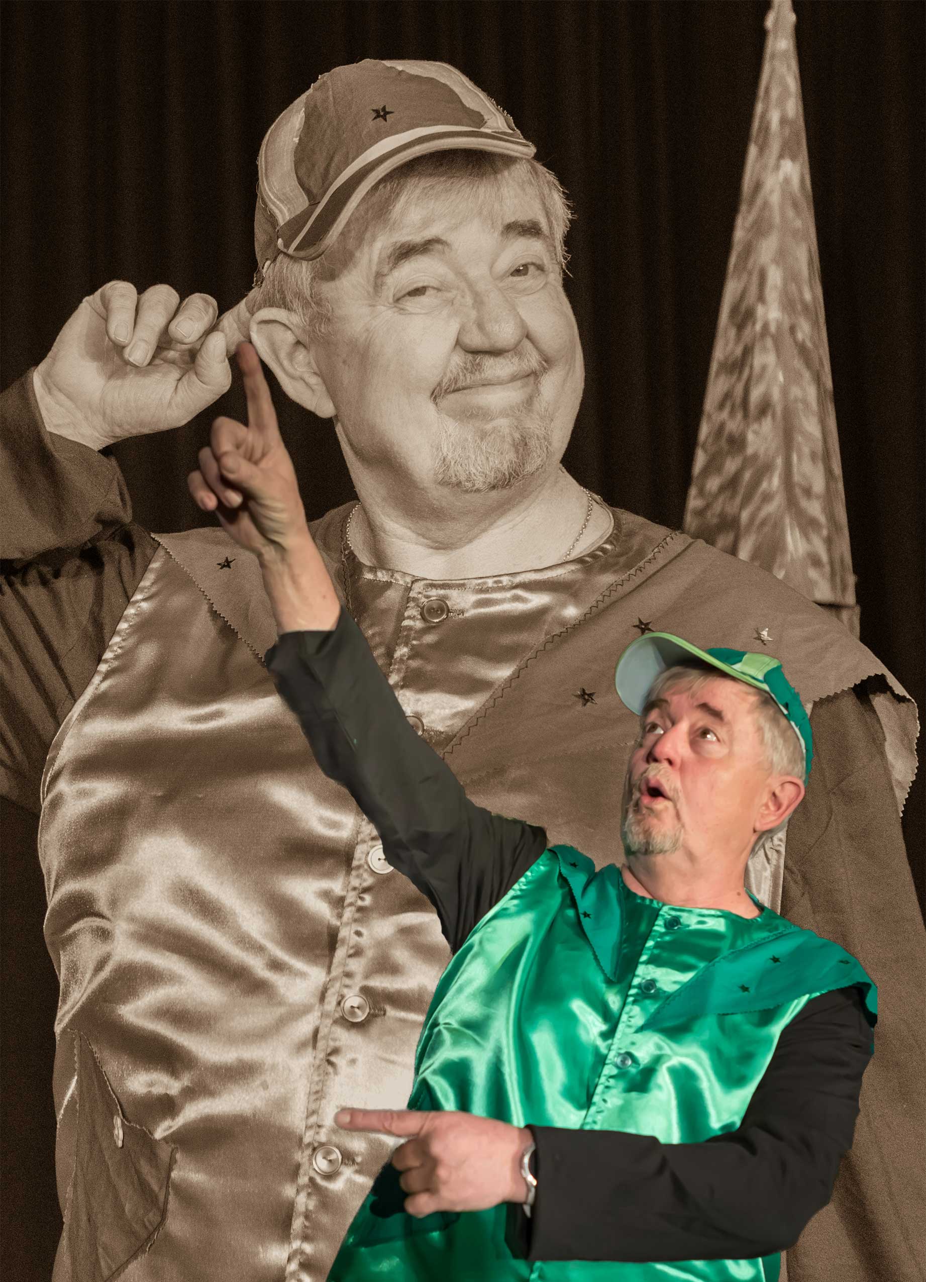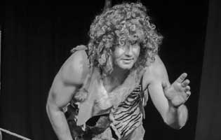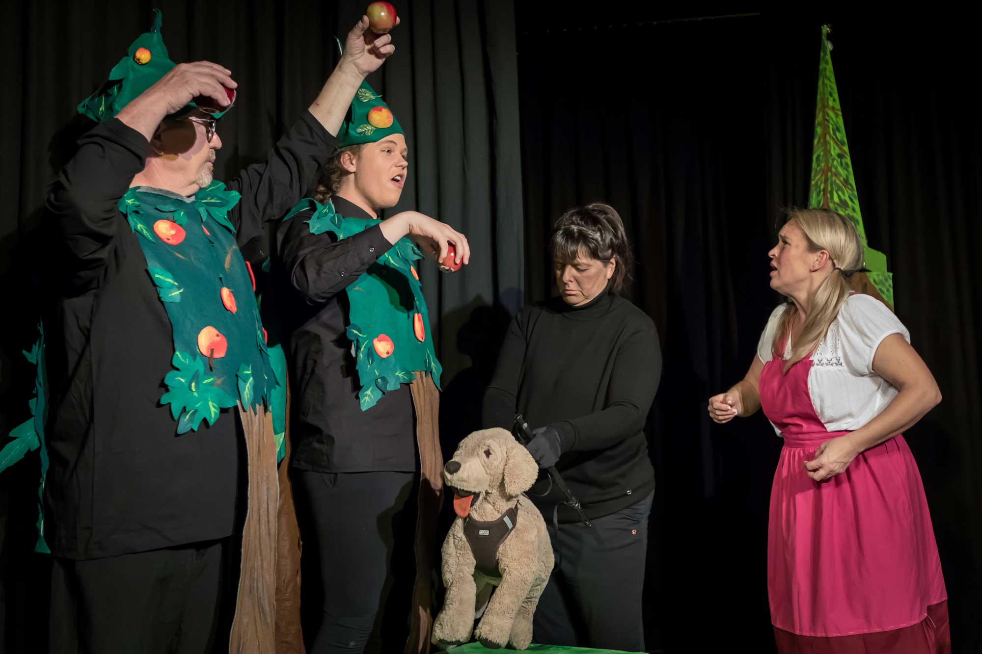 Till Geschke spielt den Käuer, einen fliegenden Affen, den Gepard, den Apfelbaum und den Fluss