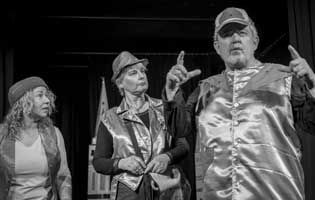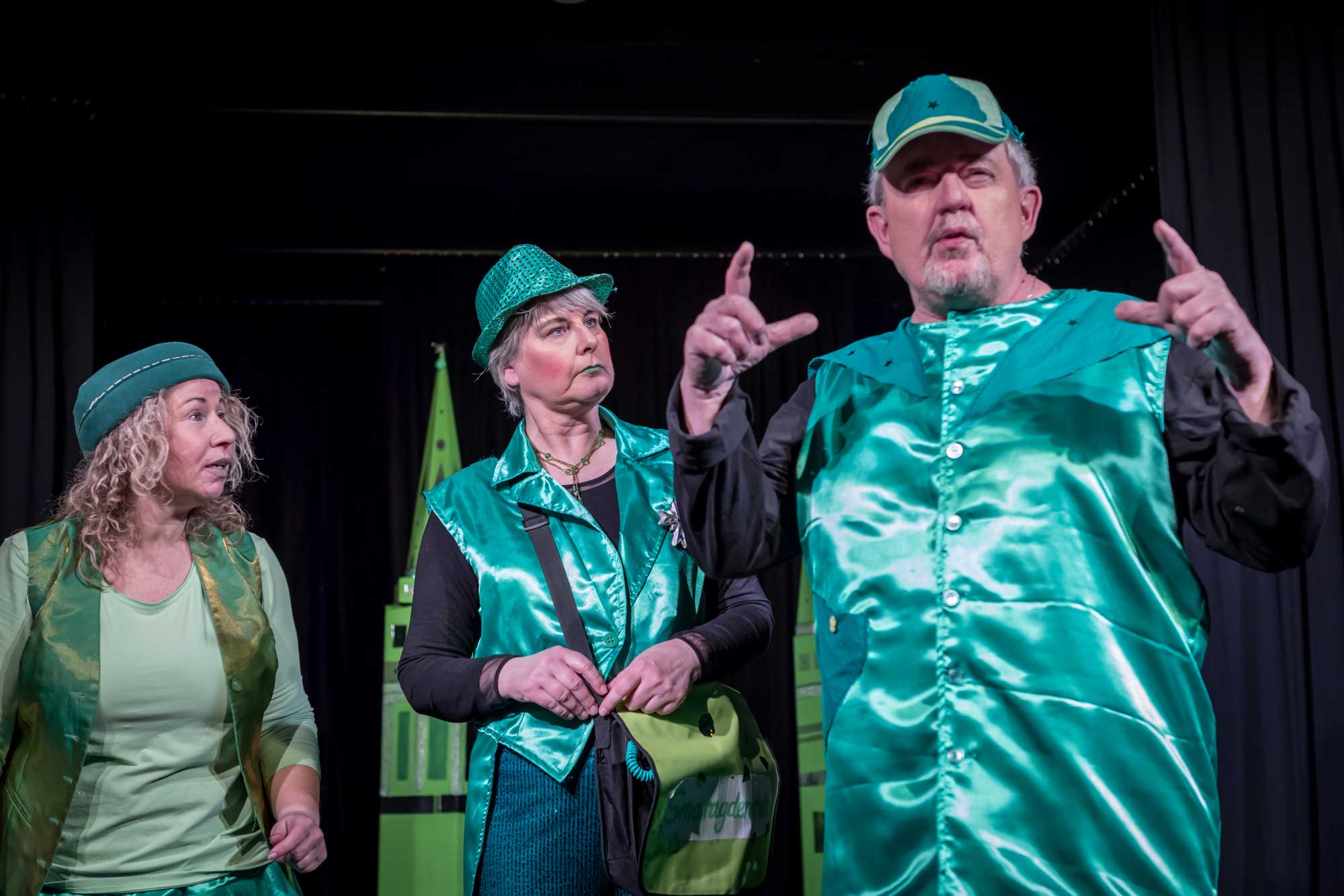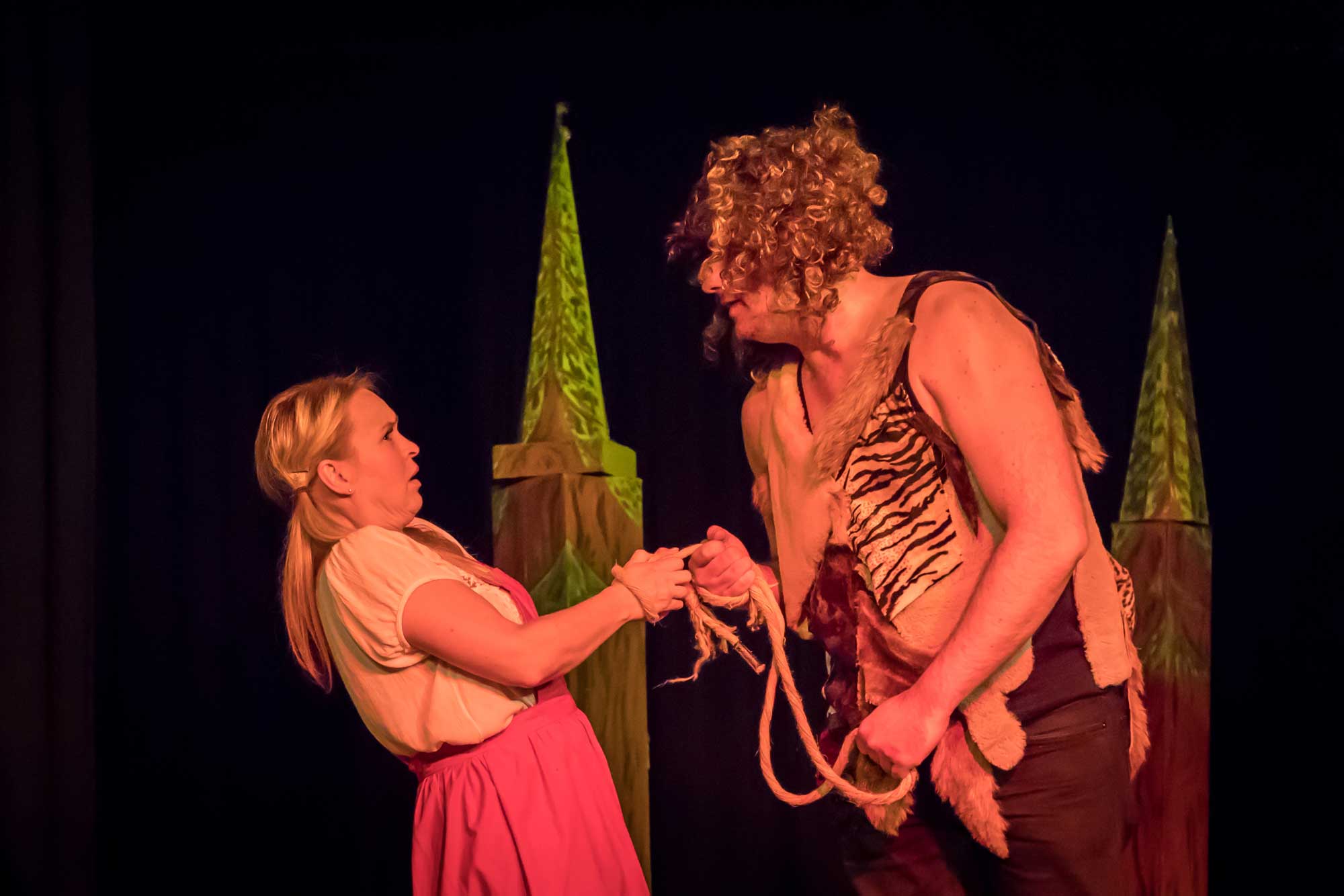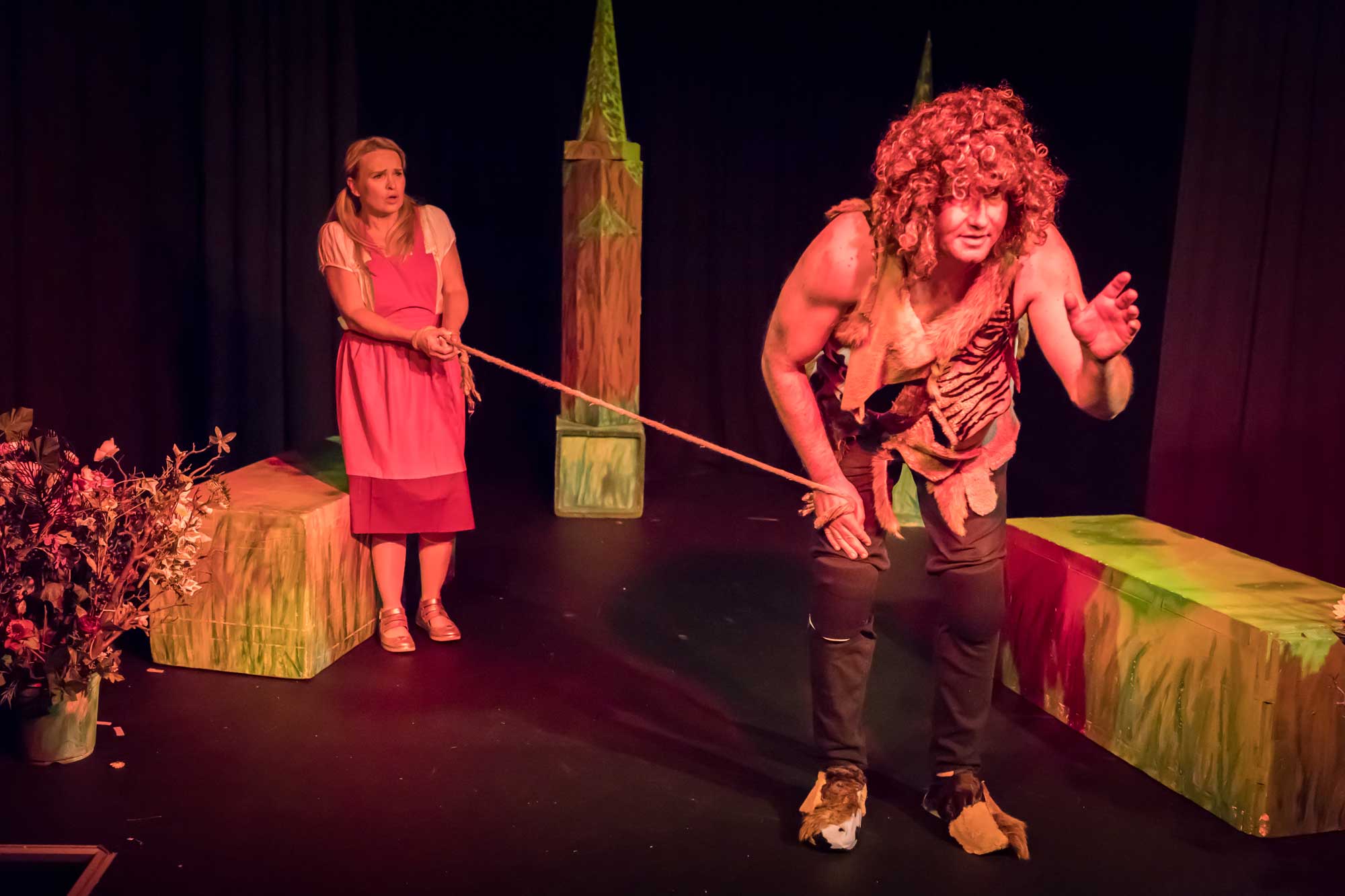 Constanze Schlass spielt die Käuerin, einen fliegenden Affen, den Fluss und Din