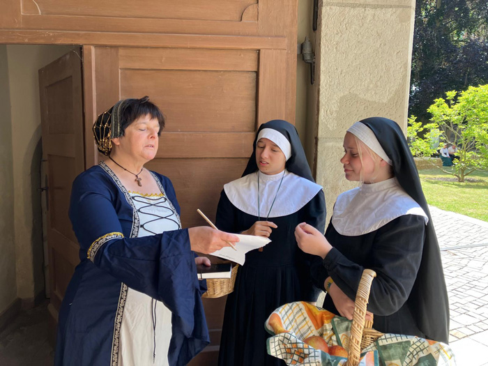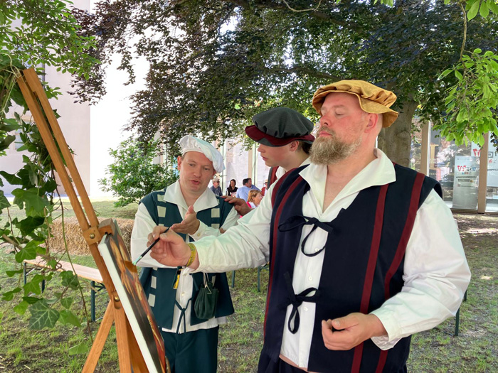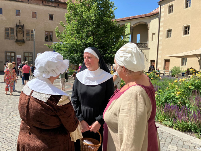 Vom 13. bis 15. Juni 2025 feierte die Lutherstadt Wittenberg sein traditionsreiches Stadtfest "Luthers Hochzeit". Ein ganz besonderes Jubiläum – 500 Jahre ist es nun her, dass Martin Luther und Katharina von Bora den Bund fürs Leben schlossen. An diesem sommerlichen Wochenende erlebten die Besucher die Geschichte von Mut und Liebe in 13 einzigartigen Erlebniswelten. Zwischen mittelalterlichem Markttreiben, Handwerk, Musik und Gauklern war auch das Amateurtheater Wolfen im historischen Hof des Lutherhauses vertreten – genau an jenem Ort, an dem das berühmte Ehepaar am 13. Juni 1525 getraut wurden und viele glückliche Ehejahre verbrachten. Unsere Darsteller nahmen die Gäste mit auf eine lebendige Reise: Bei mittelalterlichen Klängen verkörperten sie die entflohenen Nonnen, die einst gemeinsam mit Katharina aus dem Kloster Nimbschen flohen. In ihre Erzählungen mischten sich Erinnerungen, Legenden und Geschichten von Männern, Hoffnungen und Errungenschaften. Insgesamt sieben Nonnen und drei edle Herren – darunter auch Lucas Cranach – erweckten den Hof des Lutherhauses zum Leben. Jede Figur brachte persönliche Habseligkeiten mit, die ihr Wesen und Leben symbolisierten. So wurden u.a. Nüsse, Äpfel und Rosen mit dem Publikum geteilt. Ein besonderer Höhepunkt waren die Rezitationen zu jeder vollen Stunde: Ein intensiv geprobtes Gedicht, das die Flucht der Nonnen eindrucksvoll darstellte. Die Texte stammten von Andreas Hillger, mit dem bereits bei der "Nacht im Mausoleum" im Jahr 2024 erfolgreich zusammengearbeitet wurde. Am 14. Juni 2025 wurde so im Lutherhof Geschichte auf lebendige und unterhaltsame Weise zum Leben erweckt.