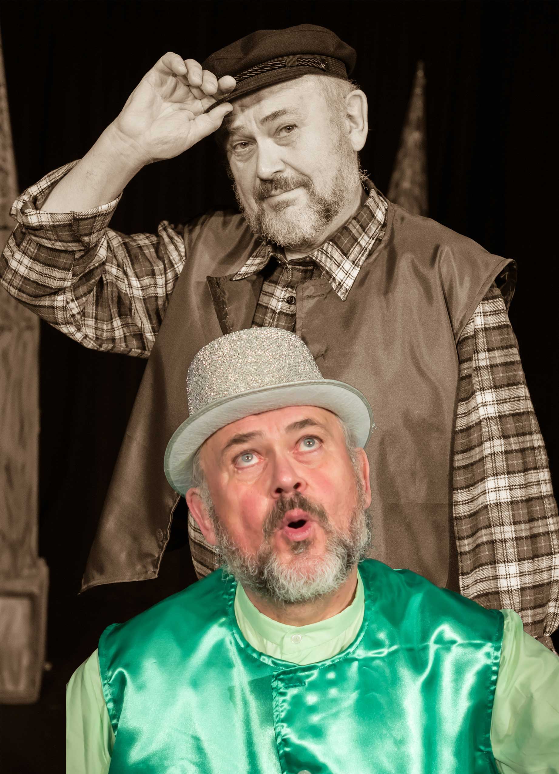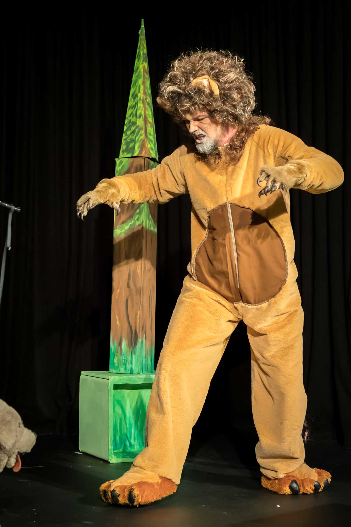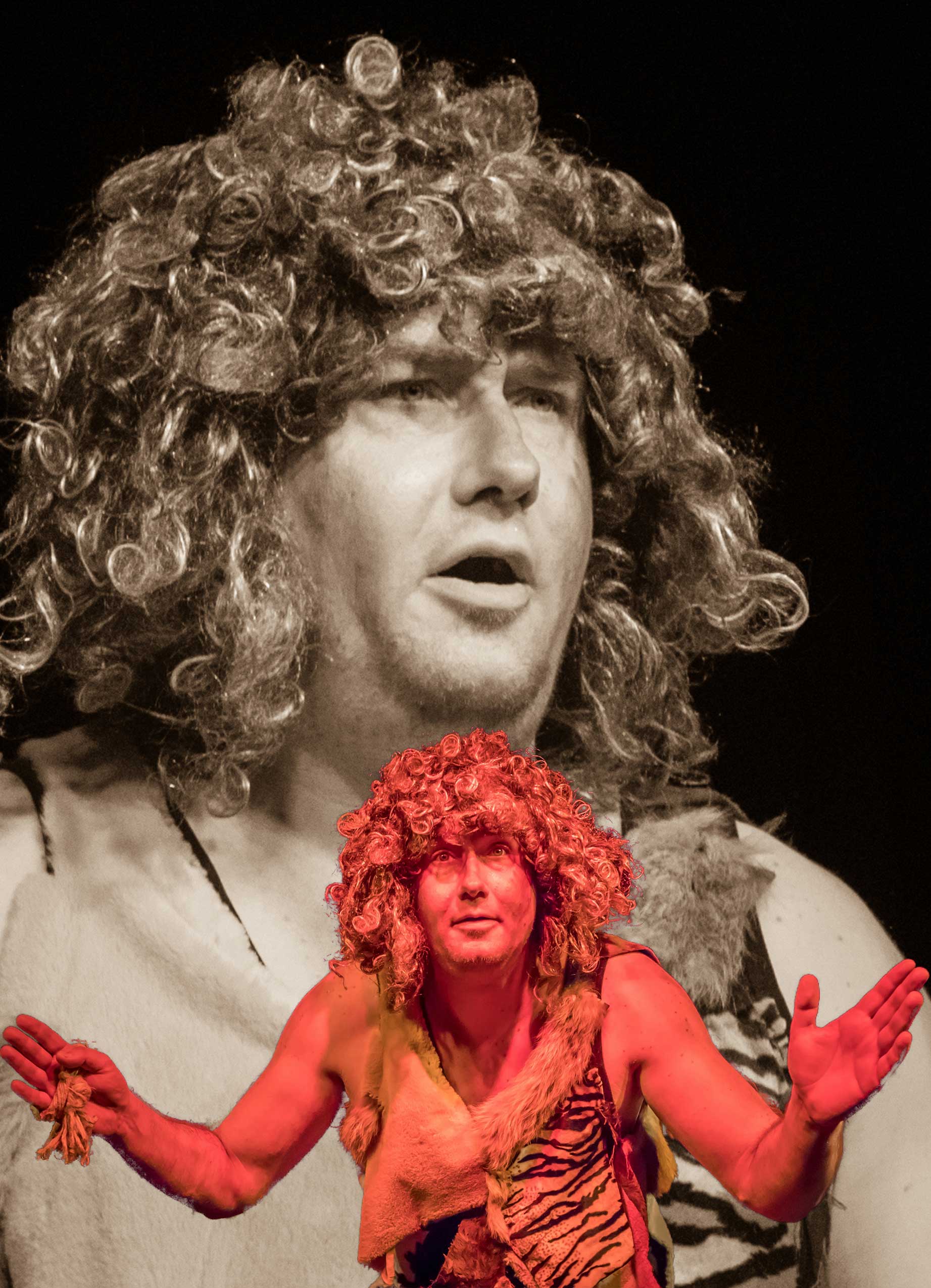 Till Geschke spielt den Käuer, einen fliegenden Affen, den Gepard, den Apfelbaum und den Fluss